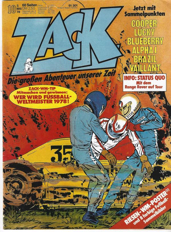 ZACK Die großen Abenteuer unserer Zeit Nr. 10 / 1978Inhalt: Cooper - Lucky - Blueberry - Alpha I- Brazil - Vaillant.Verlag: Koralle Verlag 1978Comic Hefte 66 Seiten mit PosterFormat: 21 x 28 cmZustand: sehr gut, Comic