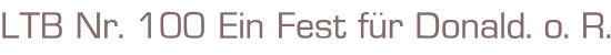 Walt Disneys Lustiges Taschenbuch Nr. 100Ein Fest für Donaldohne RückenbildVerlag: Egmont Ehapa Verlag Taschenbuch 254 SeitenFormat: 12,5 cm x 19 cm x 1,5 cmGewicht: 180 gZustand: gebraucht, sehr gut Comix - Walt Disney - LTB -