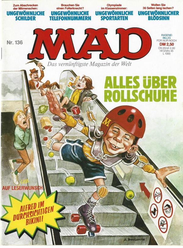 Comic - MAD Nr. 136Das vernünftigste Magazin der WeltTitel: Alles über Rollschuhe.Verlag: Williams VerlagMagazin 33 SeitenFormat: 20 cm x 27 cmZustand: sehr gut