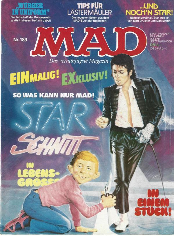 Comic - MAD Nr. 189Das vernünftigste Magazin der WeltTitel: Einmalig! Exklusiv! So was kann nur MAD! Star Schnitt in Lebensgröße in einem Stück.Verlag: Williams VerlagMagazin 33 SeitenZustand: gebraucht, gut