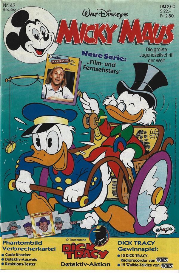 Micky Maus Heft 1990 Nr. 43mit Sammelkarten und VerbrecherkarteiVerlag: Ehapa 1990Comic-Heft 54 SeitenFormat: 17,5 cm x 26 cm Zustand: sehr gutComic