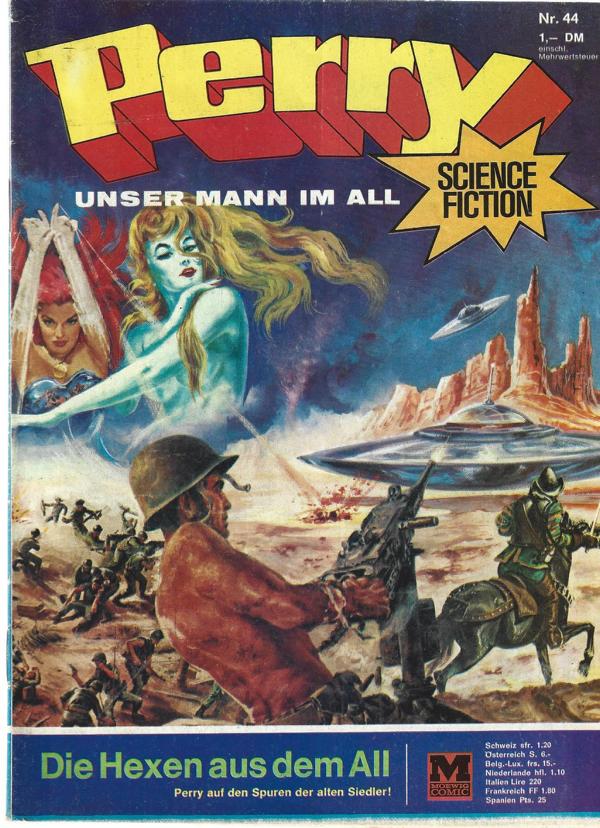 Perry unser Mann im All Nr.44Titel: Hexen aus dem All.Verlag: Moewig , 1969Comic Heft 30 SeitenFormat: 17,5 x 24 cmZustand: gebraucht, gut