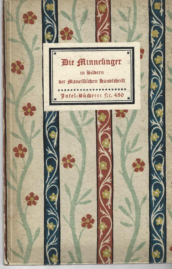 Die Minnesinger in Bildernder Manessischen Handschrift.Mit einem Geleitwort vonHans NaumannVerlah: Insel-Verlag, LeipzigBüchlein 47 SeitenFormat: 12 x 18,5 x 1 cmZustand: gut, leichte Gebrauchsspuren,leichter Wasserrand auf einigen Seiten,Vorblatt beschrieben.
