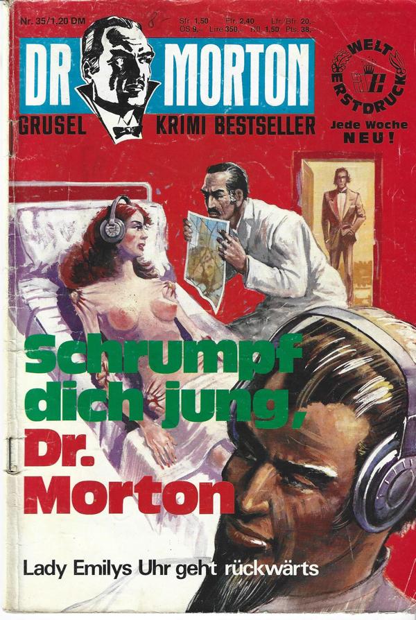 Dr. Moton Nr. 35Grusel Krimi BestsellerTitel: Schrumpf dich jung Dr. MortonVerlag: A. Eber Verlag, SasbachwaldenRomanheft, 60 SeitenFormat: 15,5 x 22,5 cm Zustand: deutliche Gebrauchsspuren