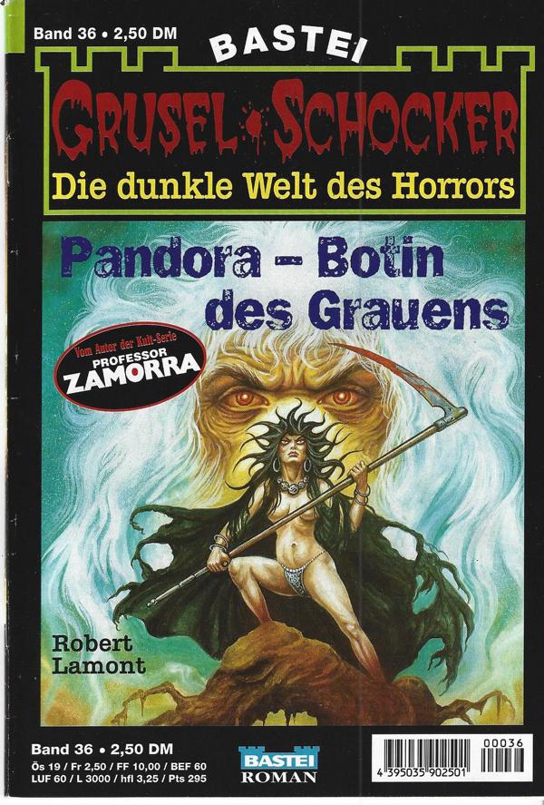Grusel Schocker Nr. 36Die dunkle Welt des Horrors.Tirel: Pandora - Botin des Grauens.von: Robert LamontVerlag: Bastei, Bergisch GladbachRomanheft 63 SeitenFormat: 15,5 x 22,5 cmZustand: sehr gut