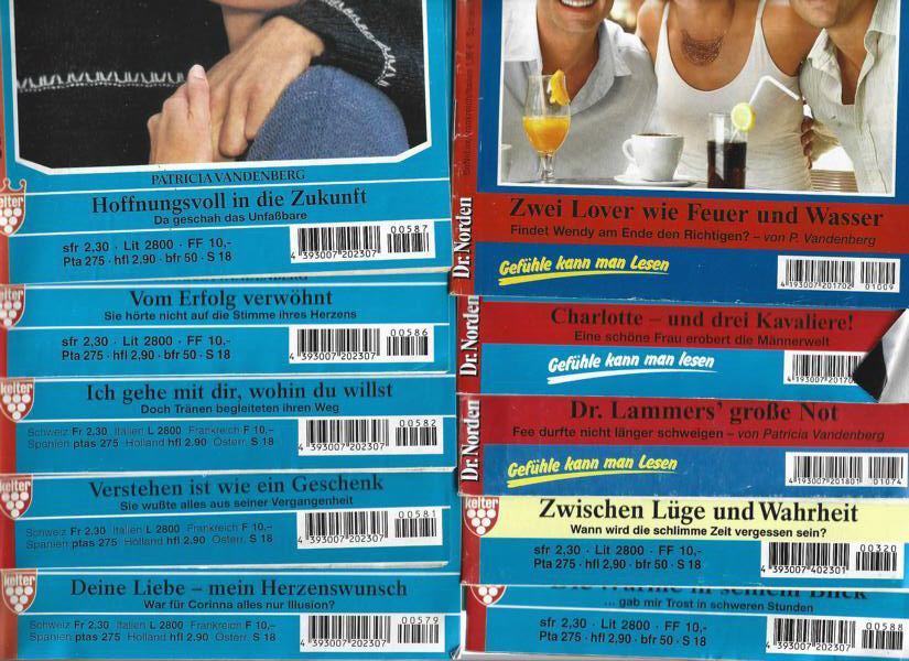 Alte Liebesromane - Moewig, Lore usw. ARZTROMANE + Der Bergdoktor BACCARA, Bianca, Natalie DESIREE - TANJA - TANGA - Caprice Fürstenromane - Schlossromane - Adel H. Courths-Mahler / F. Birkner / L. Behrendt HEIMATROMANE Humor - Gute Laune Romane - Familie Müller JANINE - JESSICA - JENNIFER JULIA - MY LADY - Corinna - Stefanie Love Affaire - Marilyn MAMI - KINDER SCHICKSAL - GELIEBTE MUTTI ROMANA - Sonja Roman SANDRA - OLIVIA - MYSTERY - Gaslicht - Schwarze Pe SILVIA / Bekenntnisse / Stelle TIFFANY - Mein Roman Rote Laterne - Wahre Geschichten - Schicksale...