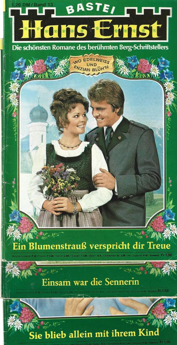 Nr. 4) Einsam war die Sennerin.Nr. 8) Sie blieb allein mit ihrem Kind.Nr.13) Ein Blumenstreaus verspricht dir Treue.von: Hans ErnstBastei-Verlag3 Romanhefte á 64 SeitenFormat: 15 x 21,5 cm x 3 StückZustand: gut, leichte Gebrauchsspurn
