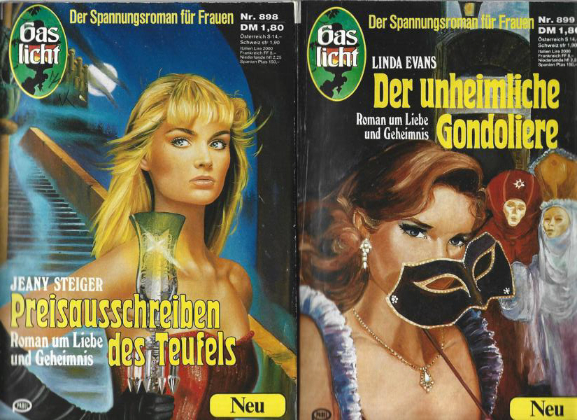 Gaslicht Große SchriftTitel: Nr. 898) Preisausschreiben des Teufels.Nr. 899) Der unheimliche Gndoliere.Autor: Jeany Steiger + Linda EvansVerlag: Erich Pabel Verlag Rastatt 19892 Romanhefte á 65 SeitenFormat: 15 cm x 22,5 cmZustand: sehr gut