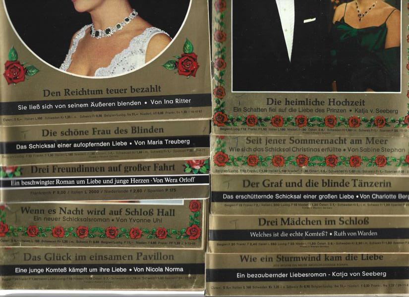 Alte Liebesromane - Moewig, Lore usw. ARZTROMANE + Der Bergdoktor BACCARA, Bianca, Natalie DESIREE - TANJA - TANGA - Caprice Fürstenromane - Schlossromane - Adel H. Courths-Mahler / F. Birkner / L. Behrendt HEIMATROMANE Humor - Gute Laune Romane - Familie Müller JANINE - JESSICA - JENNIFER JULIA - MY LADY - Corinna - Stefanie Love Affaire - Marilyn MAMI - KINDER SCHICKSAL - GELIEBTE MUTTI ROMANA - Sonja Roman SANDRA - OLIVIA - MYSTERY - Gaslicht - Schwarze Pe SILVIA / Bekenntnisse / Stelle TIFFANY - Mein Roman Rote Laterne - Wahre Geschichten - Schicksale...