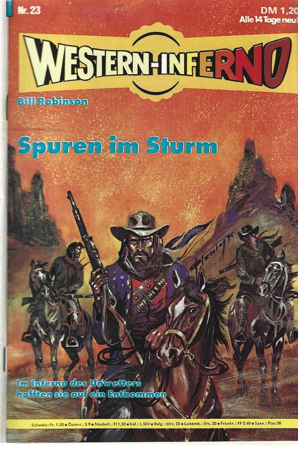 Western-Inferno Nr. 023Spuren im Schnee.von: Bill RobinsonVerlag: Wolfgang Marken Verlag, Köln 1976Romanheft 66 SeitenFormat: 15,5 x 22 cmZustand: gut