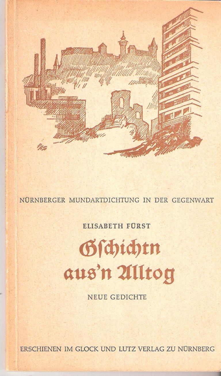 Titel: Gschichtn aus`n Alltog - Neue Gedichte - Nürnberger Mundartdichtung in der Gegenwart Autor: Elisabeth FürstVerlag: Glock und Lutz Verlag zu Nürnberg 1965Softcover, 56 SeitenFormat: 11 x 19 x 0,5 cmGewicht: 67 gZustand: gut erhalten Mundart