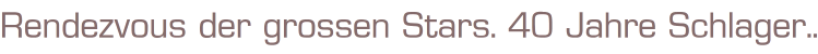 Rendezvous der grossen Stars. 40 Jahre Schlagergeshichte4 Stück Toncassetten in der Schachtel Format: 14,5 x 22,5 x 2,5 cmGewicht: 410 gZustand: sehr gut