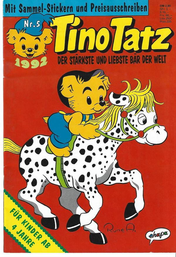 Tino-Tatz Nr. 5 Der stärkste und liebste Bär der Welt.Ehapa Verlag, (c) 1992Comic-Heft 34 SeitenFormat: 18 x 26 cmZustand: sehr gut