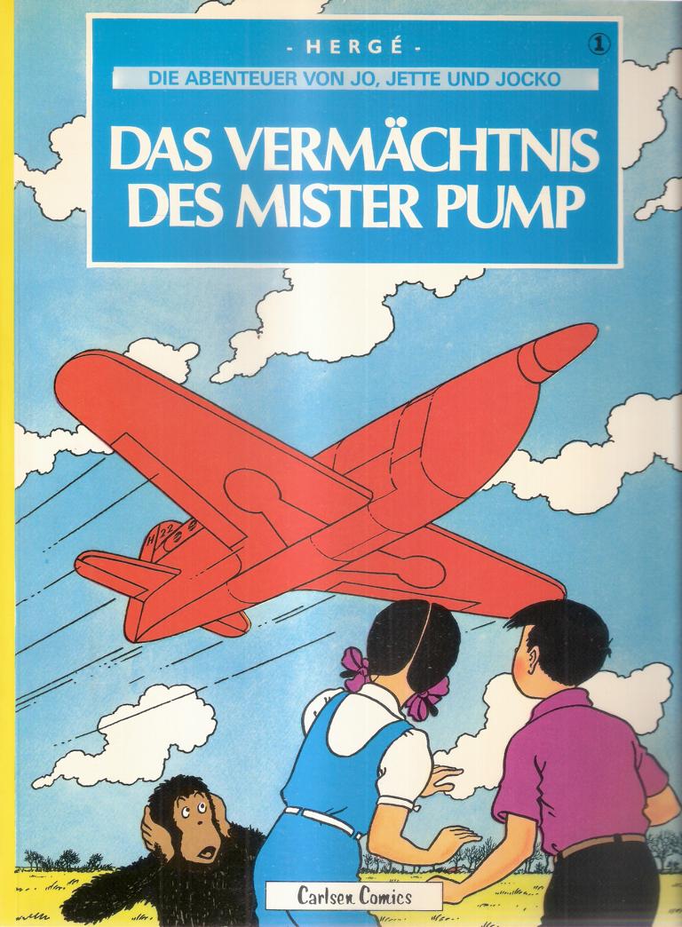 Die Abenteuer von Jo, Jette und Jocko Nr. 01Titel: Das Vermächtnis des Mister PumpVon: HergéISBN 3551018510Verlag: Carlsen Verlag 3. Auflage 1979Softcover, 52 SeitenFormat: 22 x 29,5 x 0,6 cmZustand: gebraucht, sehr guter Zustand