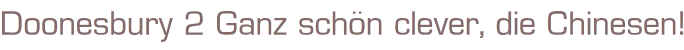 Doonesbury 2 Ganz schön clever, die Chinesen!ISBN 355102362xvon: G. B. TrudeauVerlag: comic Art, Reinbek bei Hamburg1. Auflage 1984Sovtcover, 93 SeitenFormat: 22 x 29,5 x 1 cmZustand: gut