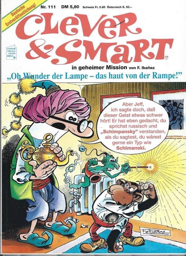 Titel: Clever & Smart 111 Deutsche ErstveröffentlichungTitel: "Oh Wunder der Lampe - das haut von der Rampe" Ausgedacht und gezeichnet von F. Iba`nezVerlag: ConPart Verlag BerlinSoftcover Format: 21,5 x 29,5 cmZustand: gut