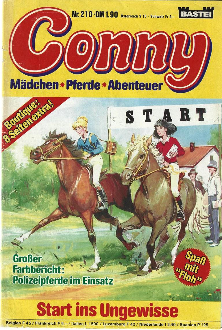 Conny - Mädchen - Pferde - Abenteuer Nr. 210Titel: Start ins Ungewisse.Verlag: Bastei, Bergisch Gladbach ab 1983Comic-Heft 29 SeitenFormat: 17,5 x 25,8 cmZustand: Mittelteil Seite 15-26 fehlt,Poster vorhanden, leichte Gebrauchsspuren