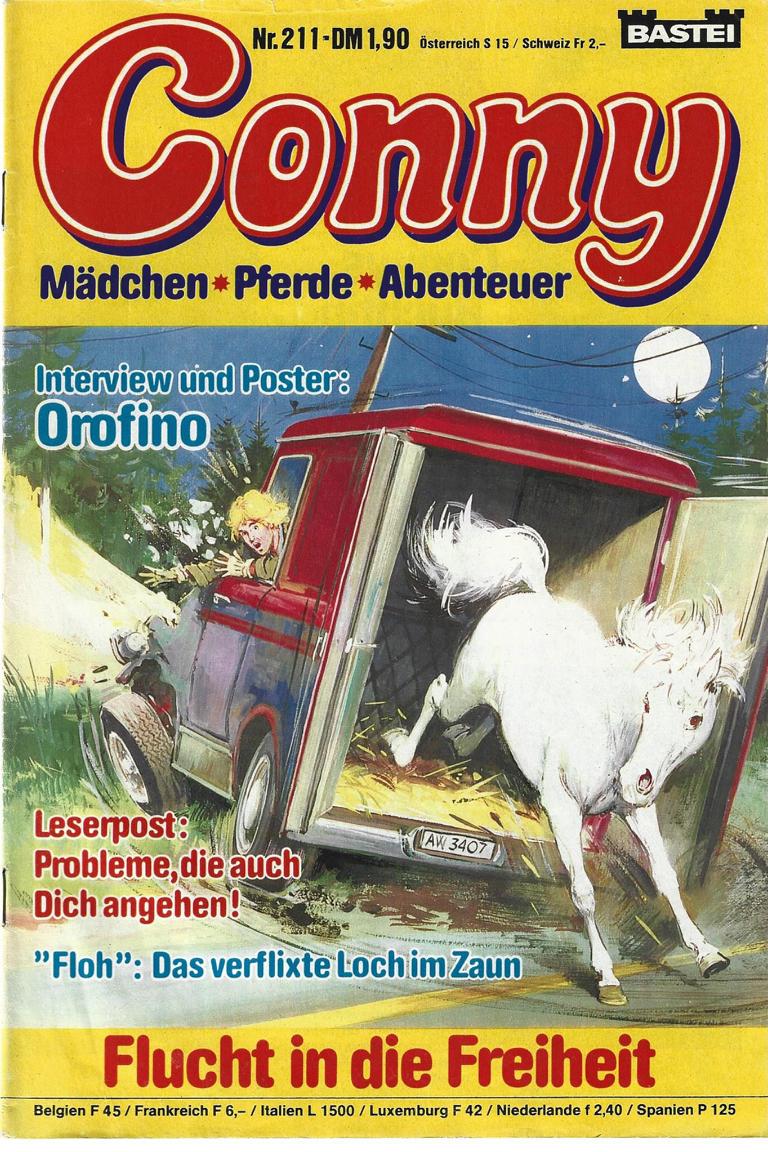 Conny - Mädchen - Pferde - Abenteuer Nr. 211Titel: Flucht in die Freiheit.Verlag: Bastei, Bergisch Gladbach ab 1983Comic-Heft 29 SeitenFormat: 17,5 x 25,8 cmZustand: komplett, sehr gut