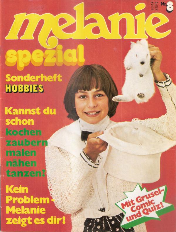 Das Comic-Magazin für GirlsMelanie spezial Nr. 8Verlag: (c) 1975 Gevacur und Kauka VerlagHeft, 62 SeitenFormat: 20,5 x 27 cmGewicht: 120 gZustand: gut erhaltenes ExemplarComic f. Girls