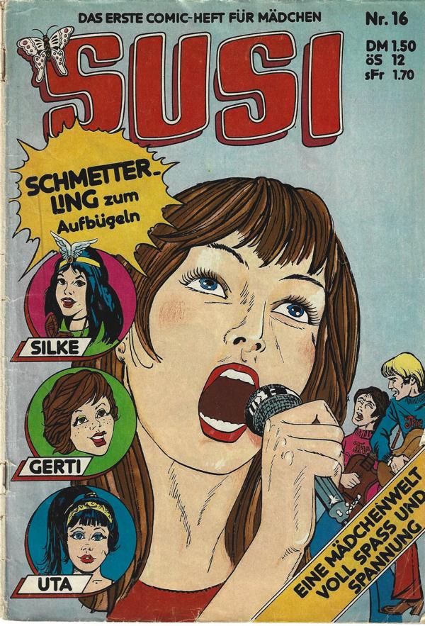 Susi Nr. 16Das erste Comic-Heft für Mädchenmit Schmetterling zum AufbügelnVerlag: Gevacur Verlag AG, Zug, 1976Comic-Heft 32 SeitenFormat: 18 x 26 cmZustand: mit Gebrauchsspuren