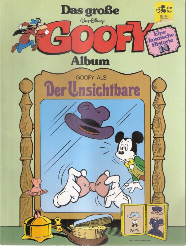 Das große GOOFY Album Nr. 14Titel: Goofy als Der UnsichtbareVerlag: Ehapa Verlag GmbH Stuttgart (c) 1981Softcover, 48 SeitenFormat: 21,5 x 28,5 cmGewicht: 154 gZustand: gut, leichte Gebrauchsspuren,