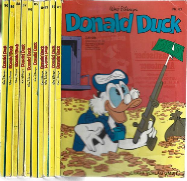 Walt Disneys Donald Duck Nr. 81 - 90 (10 Hefte)Verlag: Ehapa Verlag10 St. Taschenbücher á 94 SeitenFormat: 13 cm x 18,5 cm Zustand: gut,