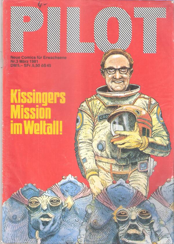 Pilot Nr. 3 / 81Neue Comics für ErwachseneKissingers Mission im Weltall ! Verlag: Volksverlag, Linden 1981Comic HeftFormat: 21 x 29,5 cmGewicht: 186 gZustand: gebraucht, gutErwachsenen Comic