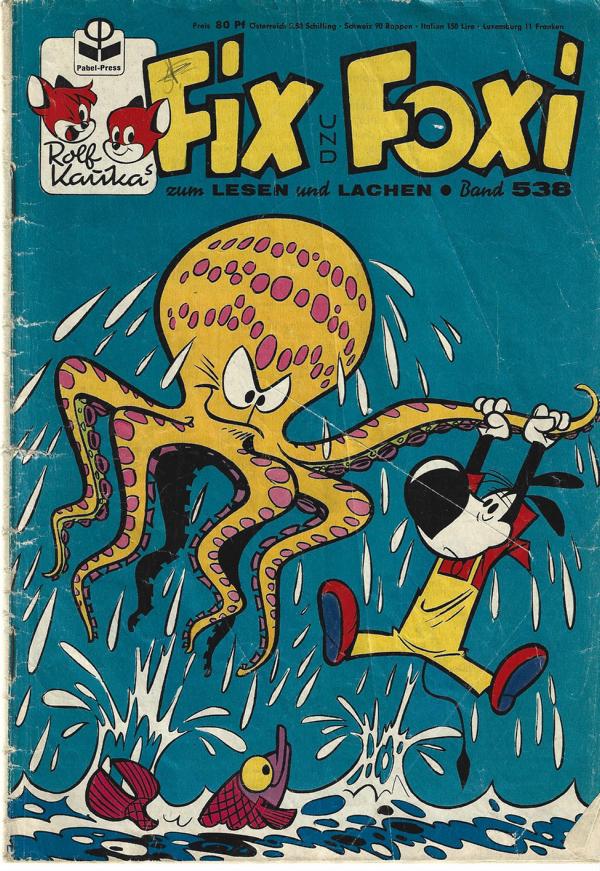 Fix und Foxi Bd. 538 (1966) zum lesen und lachenvon: Rolf Kauka Verlag: Pabel Press GmbH, Rastatt(c) 1966Heft, 31 SeitenFormat: 21 x 28,5 cm Zustand: deutliche Gebrauchsspuren,Mittelteil, Seite 15-18 fehlt.