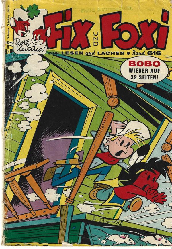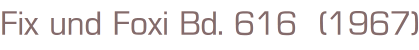 Fix und Foxi Band 616 (1967)zum lesen und lachenvon: Rolf Kauka Heft, 31 SeitenFormat: 21 x 28,5 cm Zustand: deutliche Gebrauchsspuren,Seite 15-18 Mitteltei fehlt