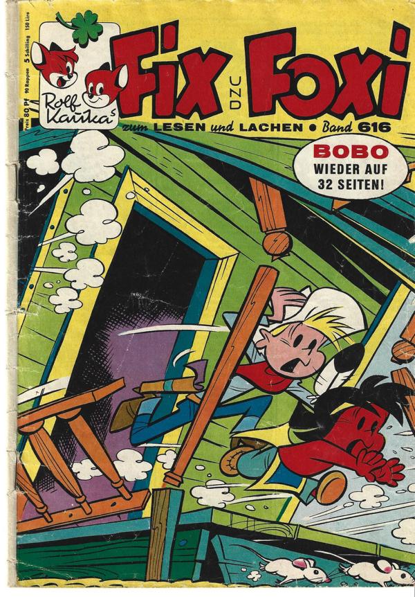 Fix und Foxi Bd. 616 (1967) zum lesen und lachenvon: Rolf Kauka Verlag: Kauka Verlag (c) 1967Heft, 31 SeitenFormat: 21 x 28,5 cm Zustand: deutliche Gebrauchsspuren,Mittelteil Seite 15-18 fehlt