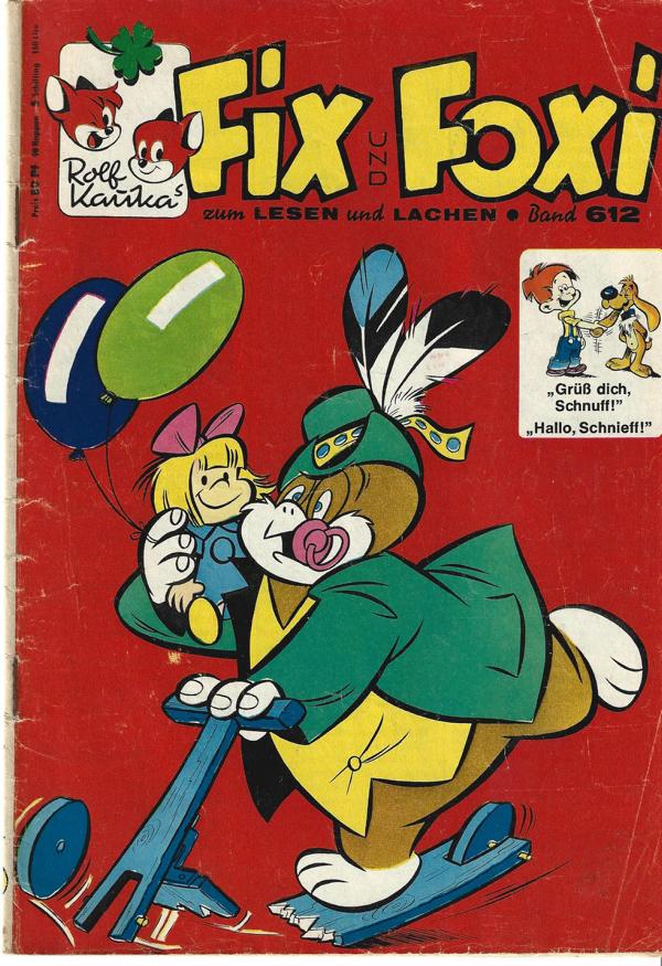 Fix und Foxi Band 612 (1967)zum lesen und lachenvon: Rolf Kauka Heft, 31 SeitenFormat: 21 x 28,5 cm Zustand: mit altersbedingten Lager-bzw. Gebrauchsspuren