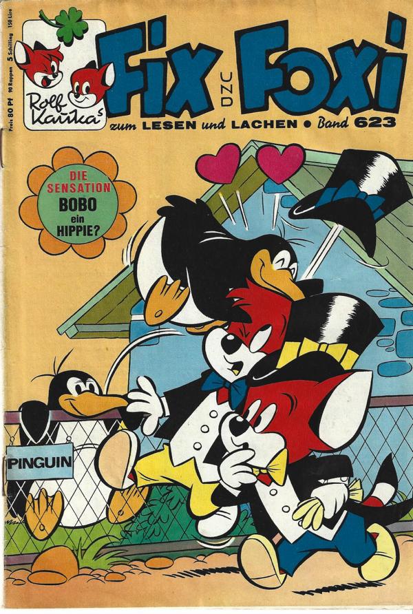 Fix und Foxi Band 623 (1967)zum lesen und lachenvon: Rolf Kauka Heft, 31 SeitenFormat: 21 x 28,5 cm Zustand: gut erhaltenes Exemplarmit leichten altersbedingten Lager-bzw. Gebrauchsspuren(Eselsohren, Seite 27-32 kleiner Riß)