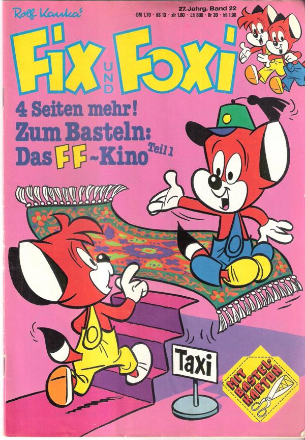 Fix und Foxi 27. Jg. Bd. 22/1979von Rolf Kauka Comic-Heft 39 SeitenFormat: 18 x 26 cmZustand: gut, leichte Gebrauchsspuren, mit Bastel-Karton