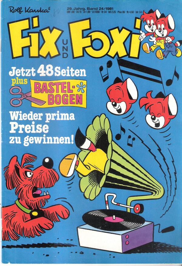 Fix und Foxi 29. Jg. Bd. 24/1981von Rolf Kauka Comic-Heft 47 SeitenFormat: 18 x 26 cmZustand: gut, ohne Bastelbogen
