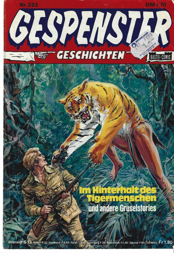 Gespenster Geschichten Nr. 333Titel: Im Hinterhalt des Tigermenschenund andere GruselstoriesVerlag: BasteiHeft 31 SeitenFormat: 17 x 26 cmZustand: gut, kleine Gebrauchsspuren Comic - Gespenstergeschichten