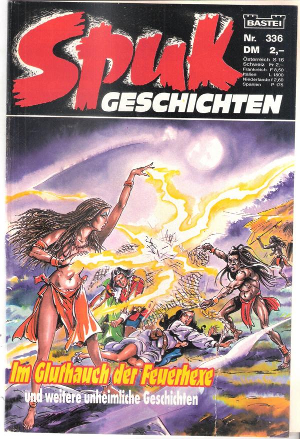 Spuk Geschichten Nr. 336Titel: Im Gluthauch der FeuerhexeVerlag: BasteiHeft, 30 SeitenFormat: 17,5 x 26 cmGewicht: 57 gZustand: gut, Titelblatt eingerissenund mit Tesa geklebt, ansonsten sehr guter Zustand Comic - Spukgeschichten