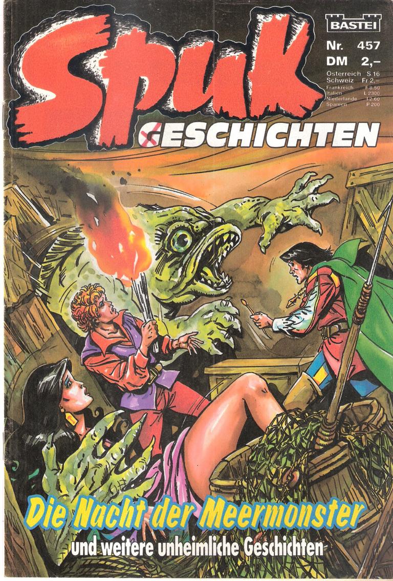 Spuk Geschichten Nr. 457Titel: Die Nacht der Meermonster und weitere unheimliche Geschichten Verlag: BasteiHeft, 30 SeitenFormat: 17,5 x 26 cmGewicht: 55 gZustand: gut Comic - Spukgeschichten