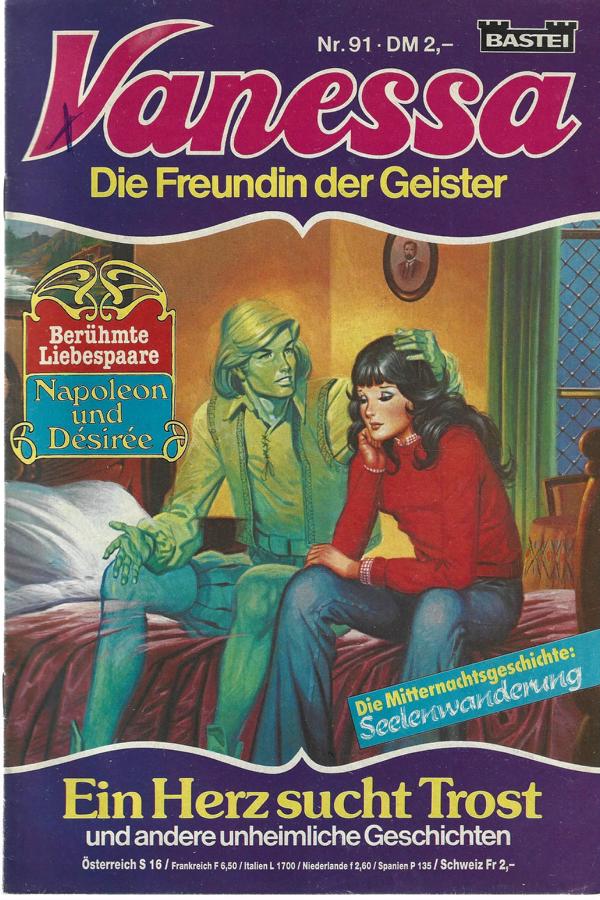 Vanessa Nr. 91 - Die Freundin der Geister Titel: Ein Herz sucht Trostund andere unheimliche GeschichtenVerlag: BasteiHeft 30 Seiten mit MittelteilFormat: 17,5 cm x 26 cmZustand: sehr gut