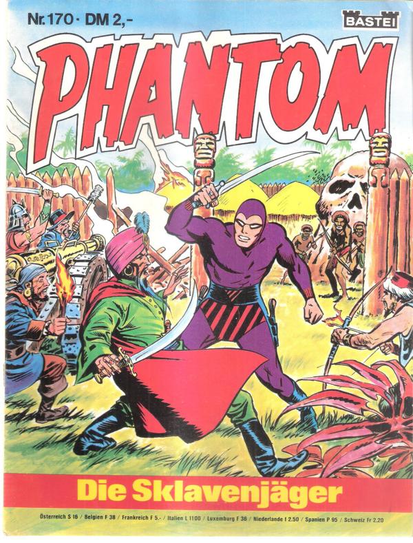 Titel: Phantom Nr.170Die Sklavenjägervon Lee FalkVerlag: Bastei 1979Heft, 50 Seiten Format: 21 cm x 28 cm Gewicht: 102 gZustand: gut Comic Sammler