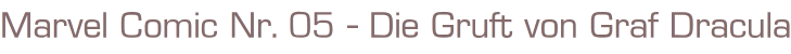 Marvel Comic Nr. 05 Die Gruft von Graf DraculaVerlag: Williams Verlag Hamburg, 1972Comic - Heft, 32 SeitenFormat: 17 cm 26 cm Zustand: deutliche Gebrauchsspuren, Eselsohren