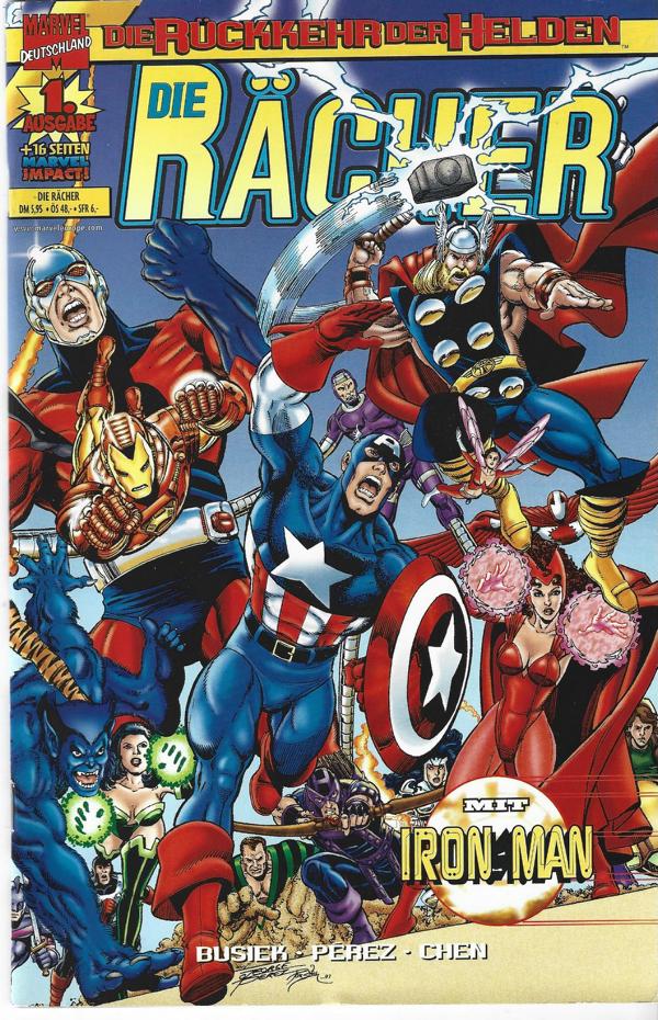 Die Rückkehr der Helden - Die Rächer 1. Ausgabemit Iron Man von: Busiek - Perez - ChenVerlag: Marvel Comics Cimic-HeftFormat: 17 x 26 cmZustand: sehr gut