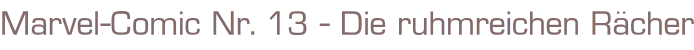 Marvel-Comic Nr. 13 - Die ruhmreichen RächerVerlag: Williams Verlag Hamburg (c) 1974Comic Heft 29 SeitenFormat: 17 x 24,5 cmZustand: gut,leichte Gebrauchsspuren