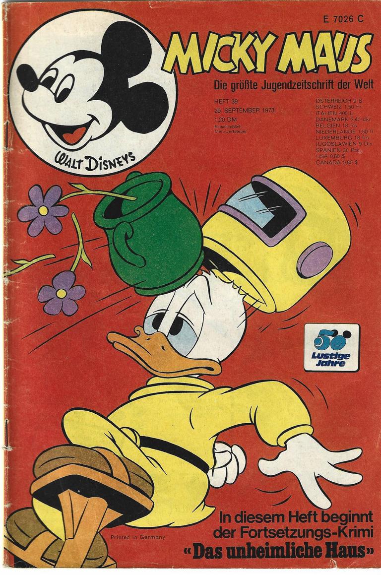 Micky Maus Heft 1973 Nr. 39Ehapa Verlag 1973Comic Heft, 39 SeitenFormat: 17,5 x 26 cmZustand: gut, leichte Gebrauchsspuren