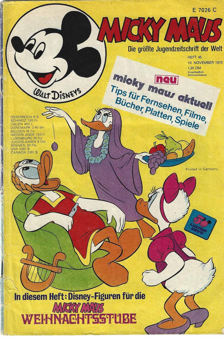 Micky Maus Heft 1973 Nr. 45Ehapa Verlag 1973Comic Heft, 39 SeitenFormat: 17,5 x 26 cmZustand: mit Gebrauchsspuren