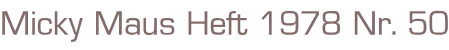 Walt Disneys Micky Maus Heft Nr. 50/1978ohne Beilagen Ehapa Verlag 1978Comic Heft, 43 SeitenFormat: 17,5 x 26 cmGewicht: 63 gZustand: leichte Gebrauchsspuren