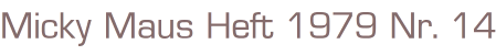 Walt Disneys Micky Maus Heft Nr. 14/1979ohne Bastel-Beilagen Ehapa Verlag 1979Comic Heft, 43 SeitenFormat: 17,5 x 26 cmZustand: sehr gut erhaltenes Exemplar