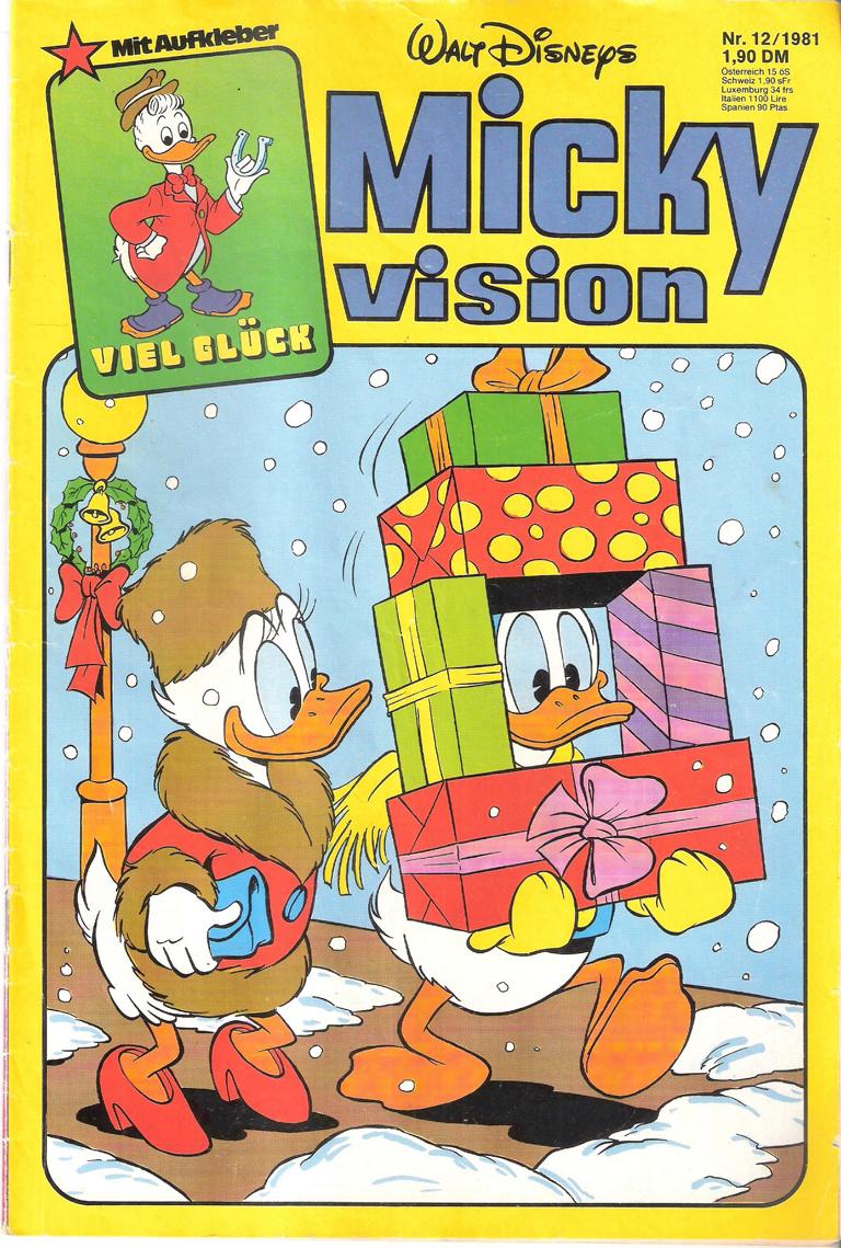 Mickyvision Nr. 12 / 1981Verlag: Ehapa Verlag 1981Heft, 34 SeitenFormat: 17,5 cm x 26 cmGewicht: 60 gZustand: mit leichten Gebrauchsspuren Comic