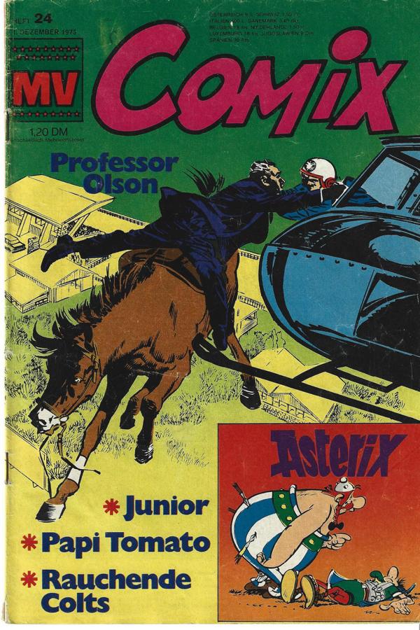 Titel: Professor Olson; Asterix; Junior;Papi Tomato; Rauchende Colts.Verlag: Ehapa Verlag Stuttgart 1973Comic-Heft, 30 SeitenFormat: 17 x 25 cmZustand: gut erhaltenes Exemplarmit kleinen Blessuren am Cover