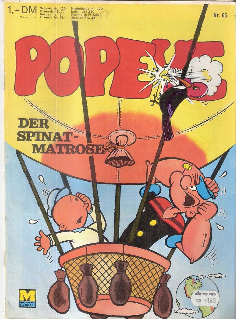 Popeye der Seemann Nr. 65Die Abenteuer des weltberühmten Spinatmatrosen.Moewig Verlag (c) 1969Comic Heft, 30 SeitenFormat: 18x26cmGewicht: 53 gZustand: gut, mit leichten Gebrauchsspuren