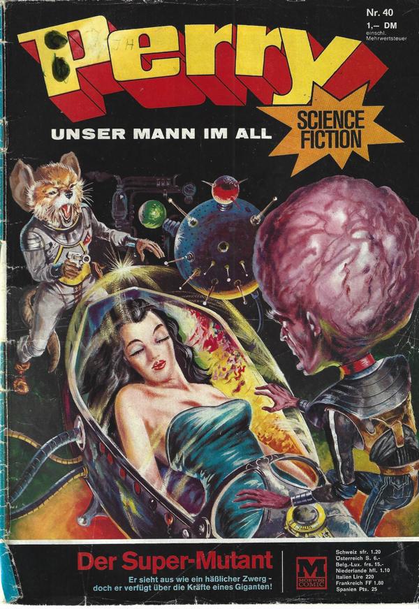 Perry unser Mann im All Nr. 40Titel: Der Super - MutantVerlag: Moewig Comic Heft 30 SeitenFormat: 18 x 26 cmZustand: deutliche Gebrauchsspuren am Cover,Seiten sauber